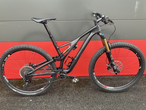 VTT SPECIALIZED STUMPJUMPER PROTaille: S4 pour personnes d'1m75 à 1m88. Cadre: Carbone Fourche Fox 34 Factory revêtement Kashima , 140mm de débattement. Amortisseur Fox Float DPS Factory revêtement Kashima, 130mm de débattement. Equipements: transmission Sram XO 1 x 12 vitesses, Freins à disques hydrauliques Shimano Deore XT, pneus 29x2.3, porte bidon, tige de selle téléscopique revêtement Kashima. Vélo entièrement révisé, Parfait état garantie. Poids: 12,5 kg Valeur Neuf: 7499.€ Prix: VENDU Possibilité d'envoi moyennant participation de 80 euros. |